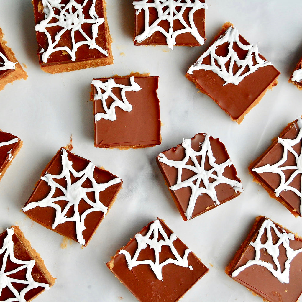 - Cut fudge into squares – decorate with icing making spider webs before serving. Keep fudge refrigerated until ready to serve. Enjoy!